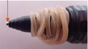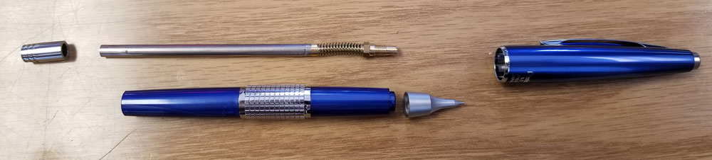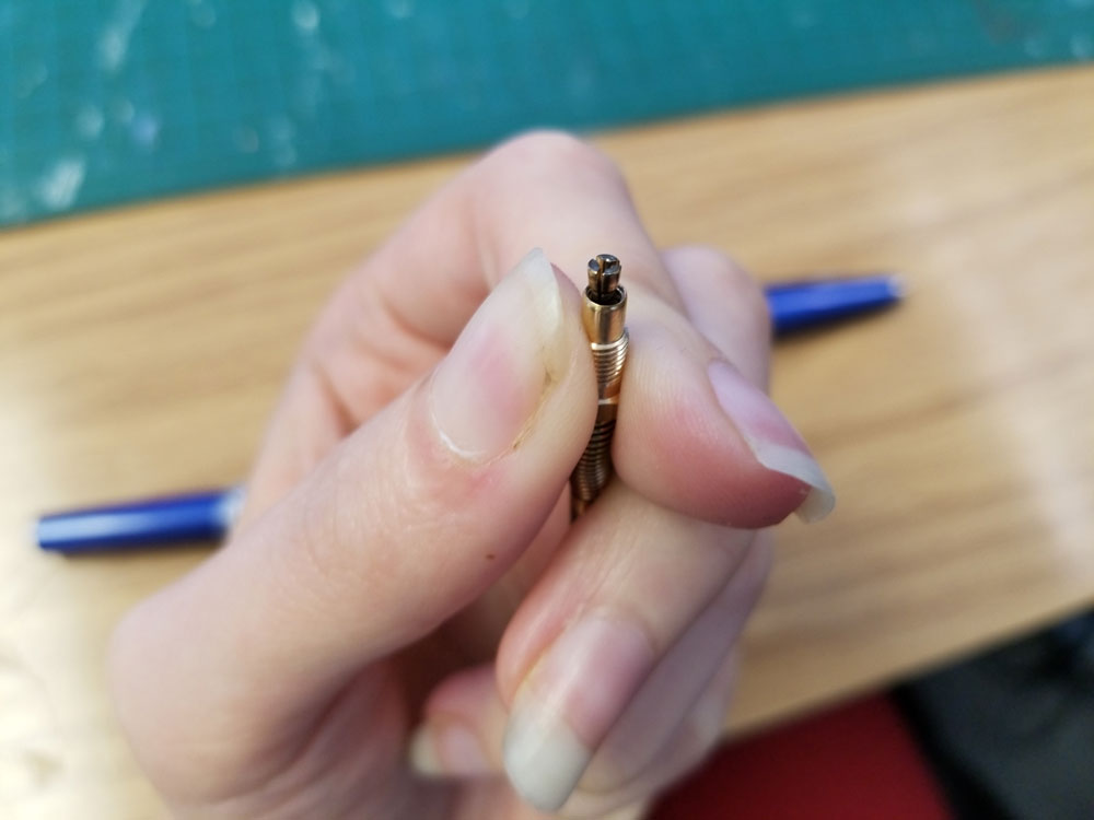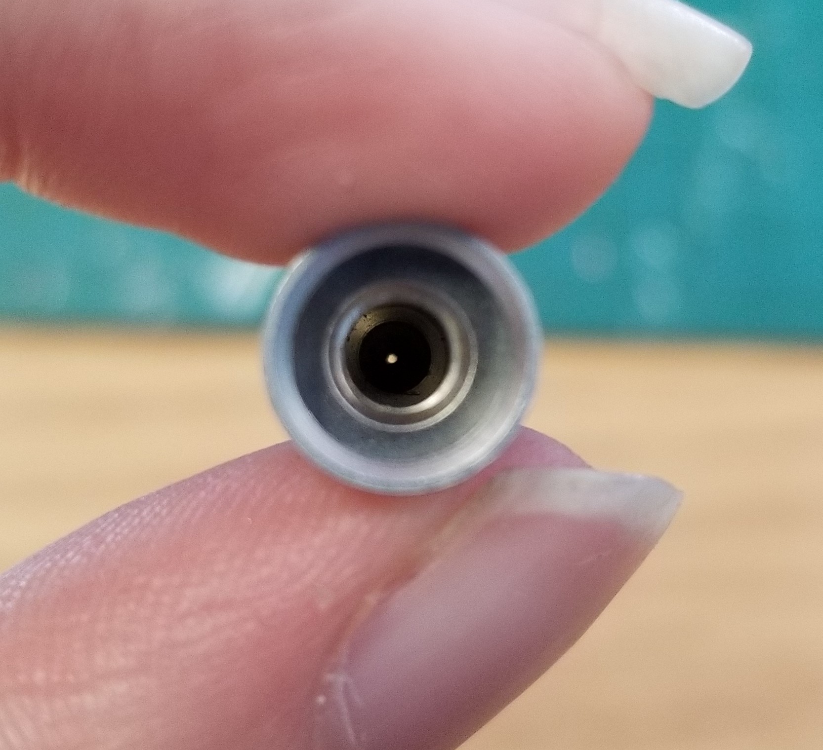 3. This is the top of the pencil, there may be debris stuck in here as well. If you can see the small hole inside the part as shown in the photo this means the part is clear. If the hole isn’t visible gently take a small pin and clear the debris.