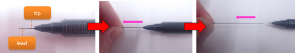 If pens are not stored properly such as keeping the pen with the tip facing up, small air bubbles may enter the ink cartridge and prevent ink from dispensing properly. This can be resolved by continuing to write or scribble on regular paper to allow the air to escape from the cartridge.
