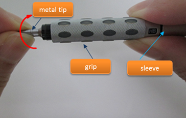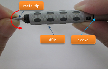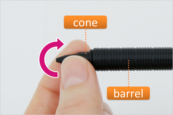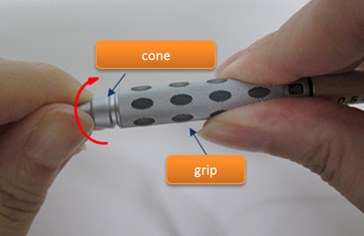 2. After separating the cone from the barrel, hold the grip and twist the metal tip part