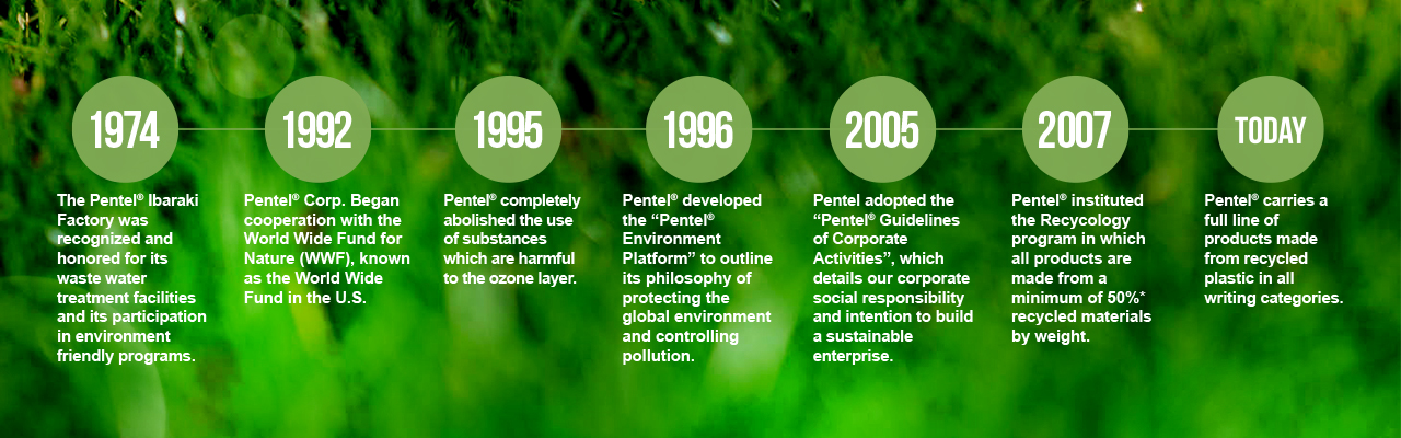 Pentel created the Recycology™ program to enhance its mission of helping the environment by creating less waste and increasing recycling activity. At Pentel, we recognize that our natural resources represent our future. We are working hard to make a positive contribution to the environment by minimizing our use of natural resources.