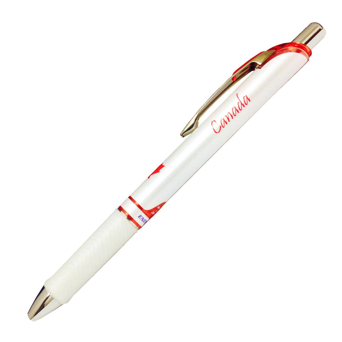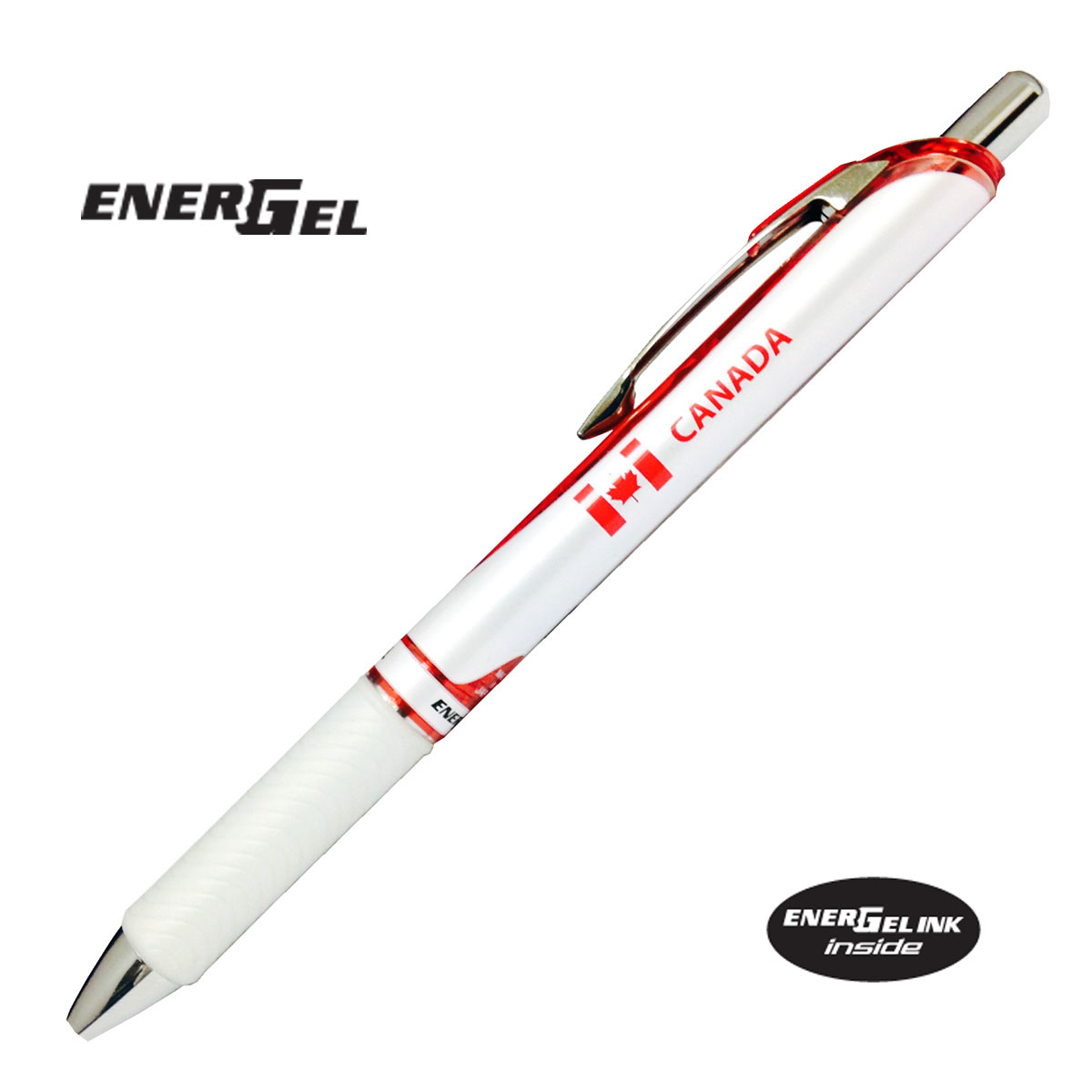 Energel Canada Edition. High performance ink technology combines the best qualities of liquid and gel ink for a super-smooth writing experience. Liquid gel ink dries so fast even left handed writers love it – no smears, no smudges, no globs. Smooth grip for writing comfort. Uses LR7 refills.