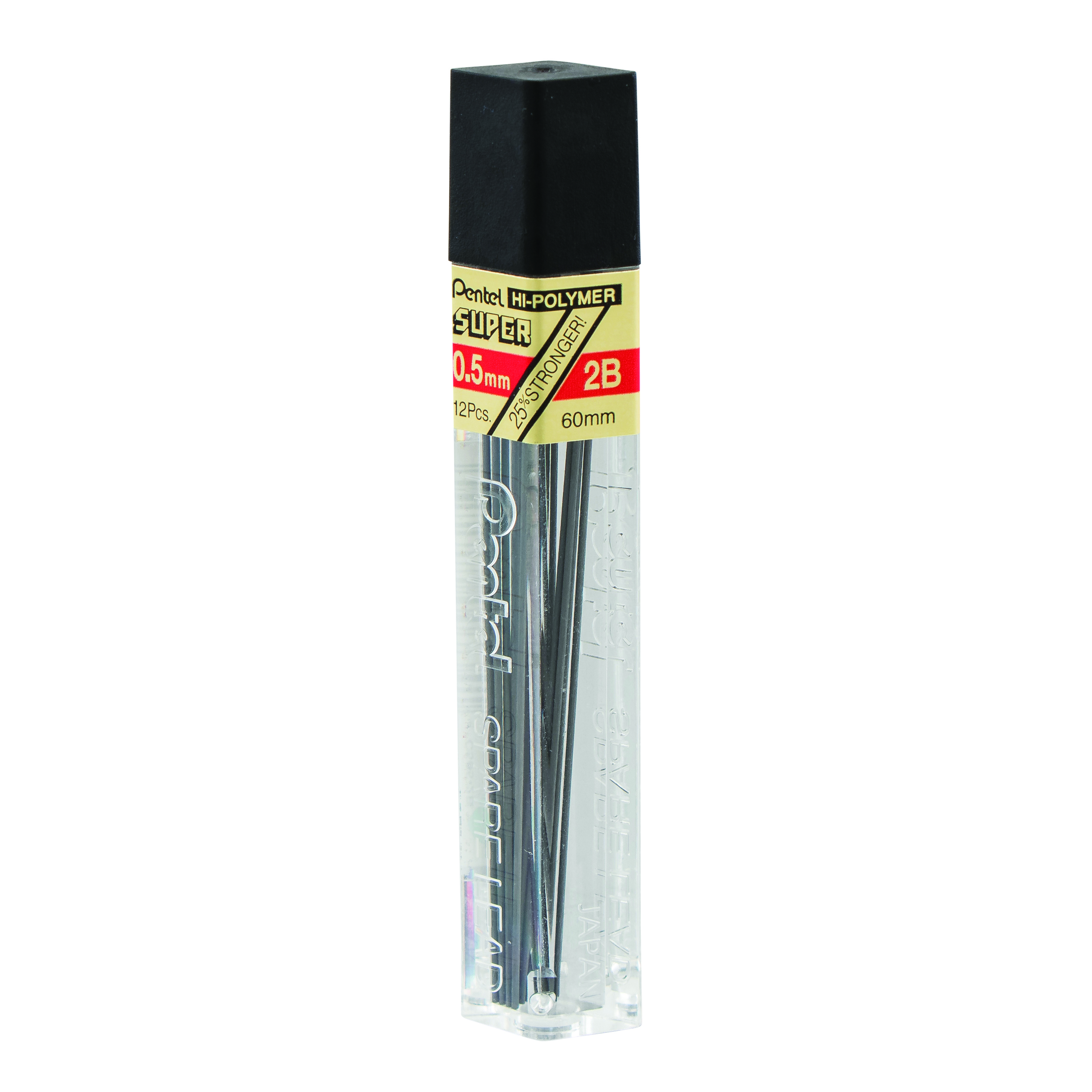 A unique compound of graphite and carbon bound together with a special synthetic resin. Thin but extremely strong lead that produces a smooth, dense black line. 0.5mm. 12 leads per tube. Available in 9 grades: 4B(NEW), 2B, B, HB, F, H, 2H, 3H, 4H and 5H.