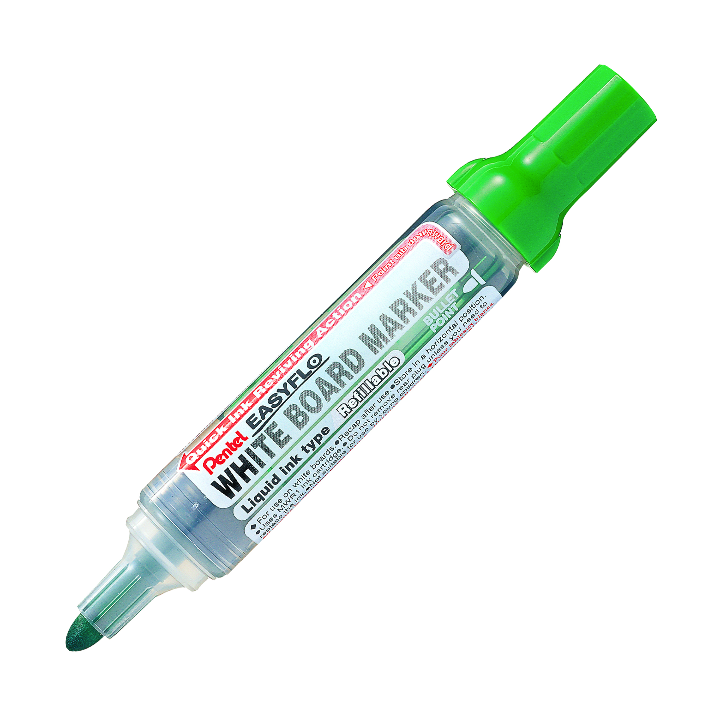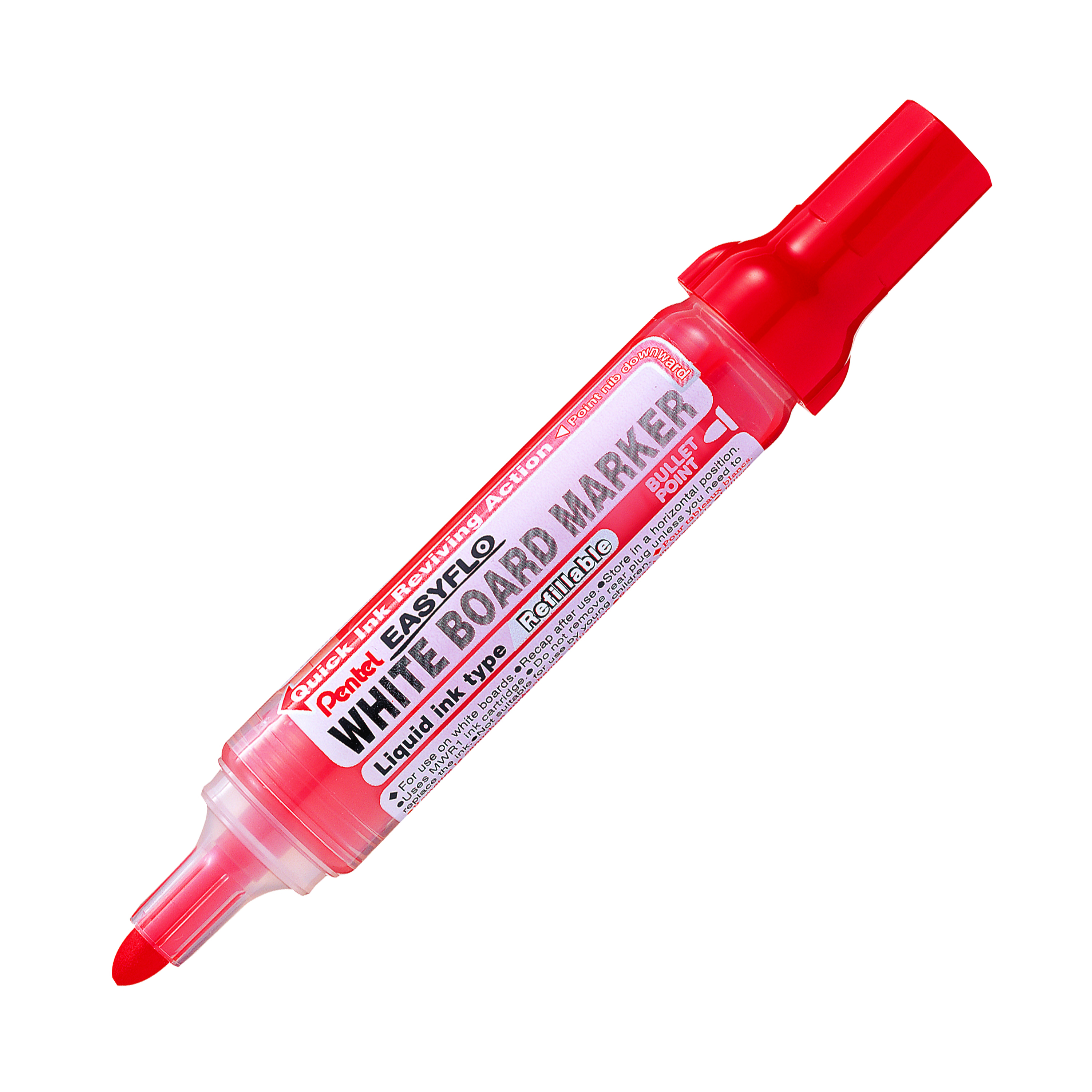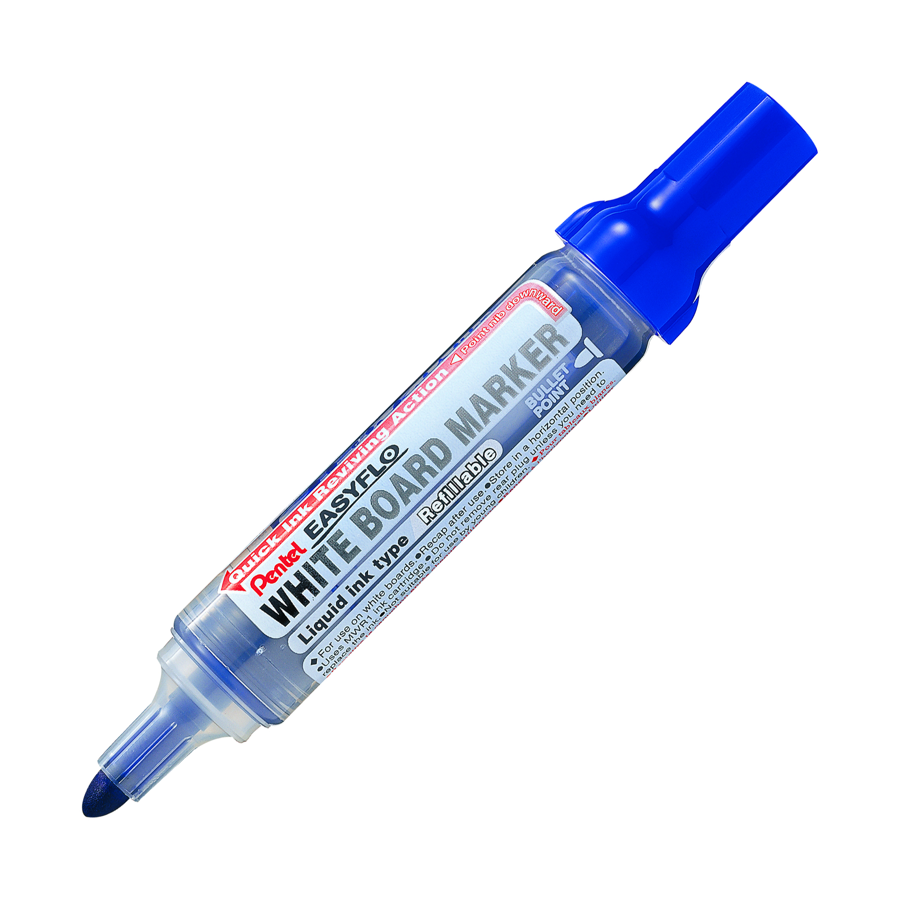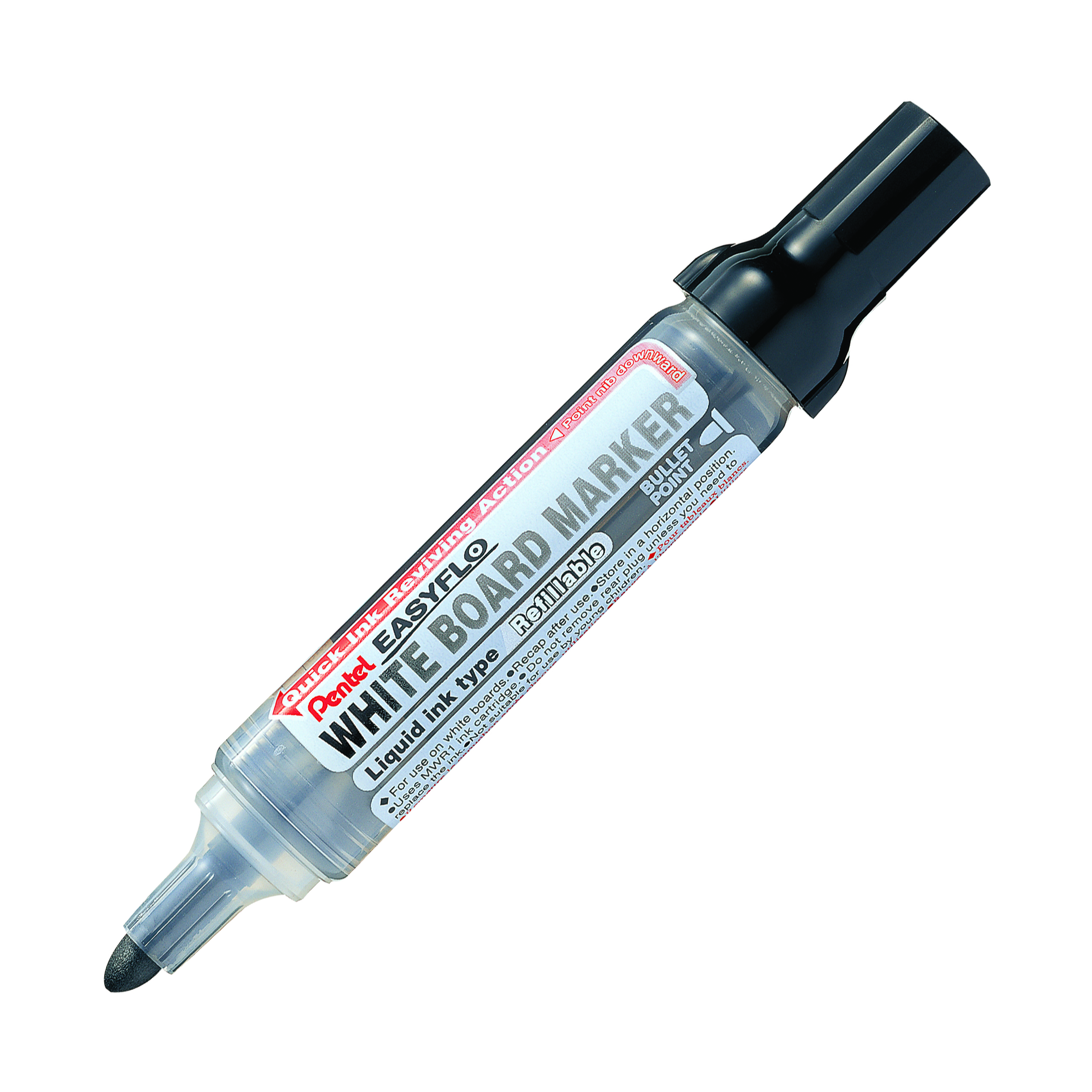 Bullet point liquid ink white board marker. Constant flow of ink. Point nib downwards for quick ink reviving action. (Ink refills are not available in Canada.)