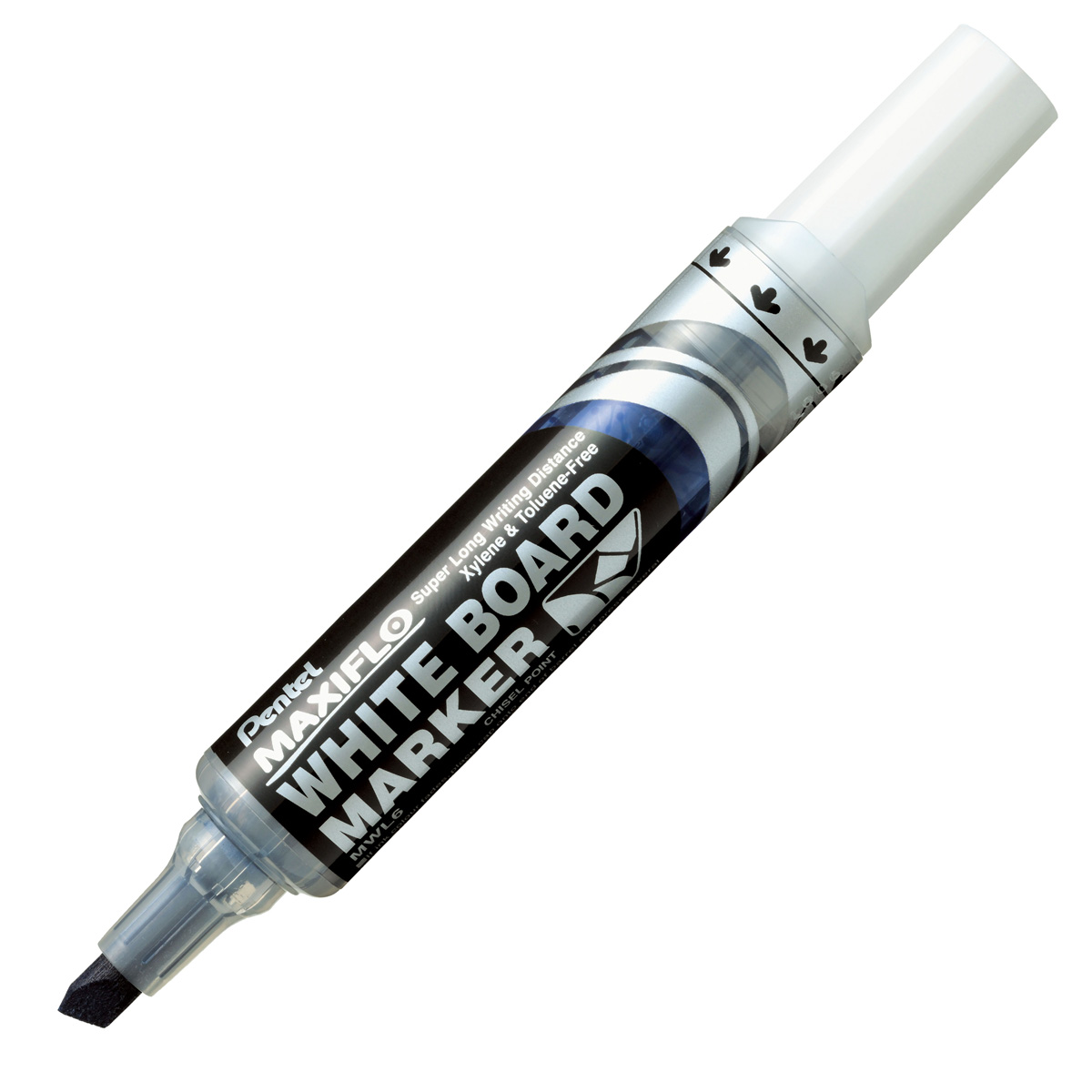 Chisel point. Ink supplied by unique pump action, it writes about three times more than our standard white board marker. 1000m writing distance. Available 4 color set.