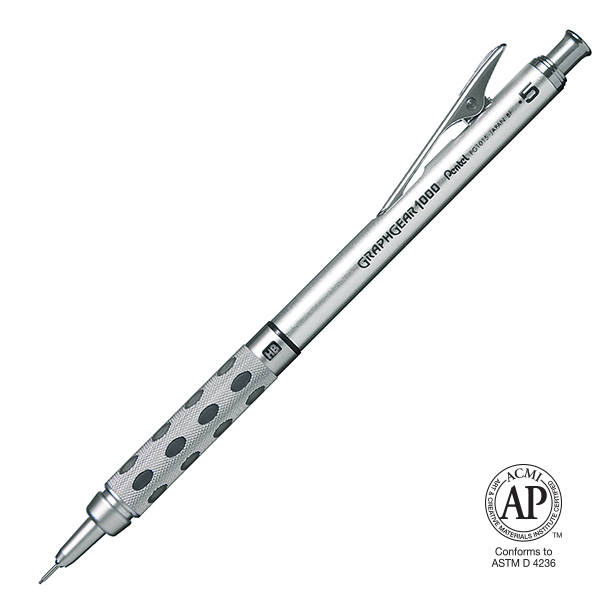 Suitable not only for draughting and professional use, but also for general writing. Stylish and functional designed body. Features 4mm retractable sleeve, dual grip (metal and rubber), metal clip and adjustable lead grade indicator. Available in 0.3mm(PG1013) / 0.5mm(PG1015) / 0.7mm(PG1017) / 0.9mm(PG1019) point sizes.