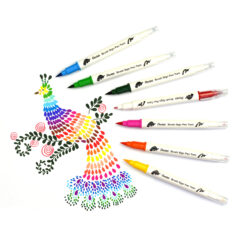 Water-based dye ink. One marker with brush tips at both ends – medium and fine. Unique, flexible tip produces expressive brush work. Perfect for illustrations or calligraphy. The richly saturated colours are fully blendable with water and other sign pen brush colours.