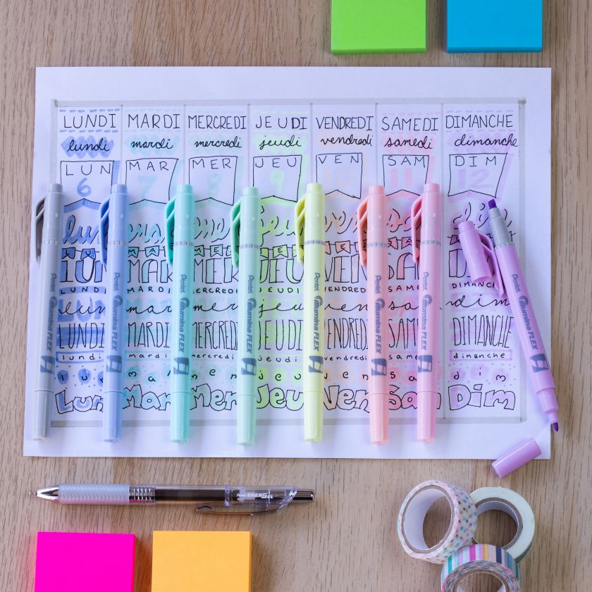 Illumina Flex à la particularité d’avoir deux pointes. D’un côté, on retrouve une pointe conique et fine. L’autre pointe, qui est biseautée, se distingue car un anneau en forme de fossé, placé à la base de sa pointe, procure une flexibilité, ce qui assure des largeurs uniformes et un meilleur contrôle à chacun de vos traits. Parfait pour surligner, souligner et coder en couleurs. Convient aux impressions, aux télécopies et aux photocopies. Idéal au bureau, à la maison ou en classe. Des couleurs pastel pour un esthétisme en douceur. Rechargeable avec SLR3.